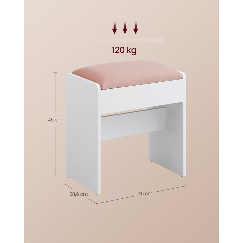 Scurta descriere: Taburetul VASAGLE pentru masa de toaleta combina confortul cu un design modern si delicat. Tapiteria din catifea roz candy si baza alba mata ofera un aspect elegant, potrivit pentru dormitor, dressing sau hol. Constructia solida asigura stabilitate si rezistenta in utilizare zilnica.