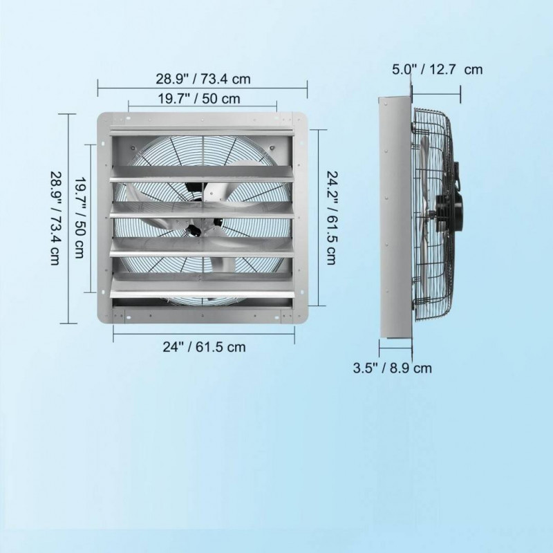 Oprire automata: Materialele de inalta calitate utilizate in carcasa si grila asigura ca ventilatorul isi mentine o performanta excelenta chiar si in conditii meteorologice dure, cum ar fi ploaie si zapada. Ventilatorul cu jaluzele se opreste automat in timpul iernii cand nu este utilizat pentru a ajuta la mentinerea temperaturii interioare.