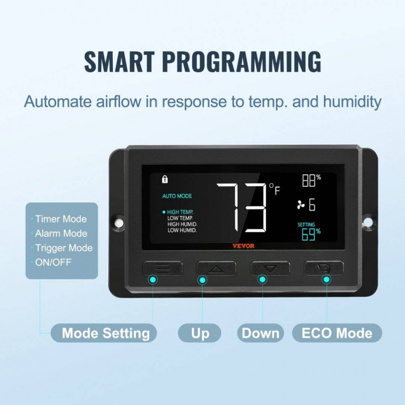 depozite, Metal, 70 W, 2900 m³/h, diametru 406 mm, 60 dB, Programator
