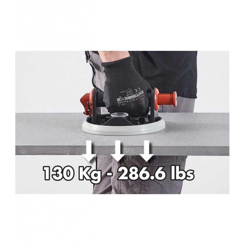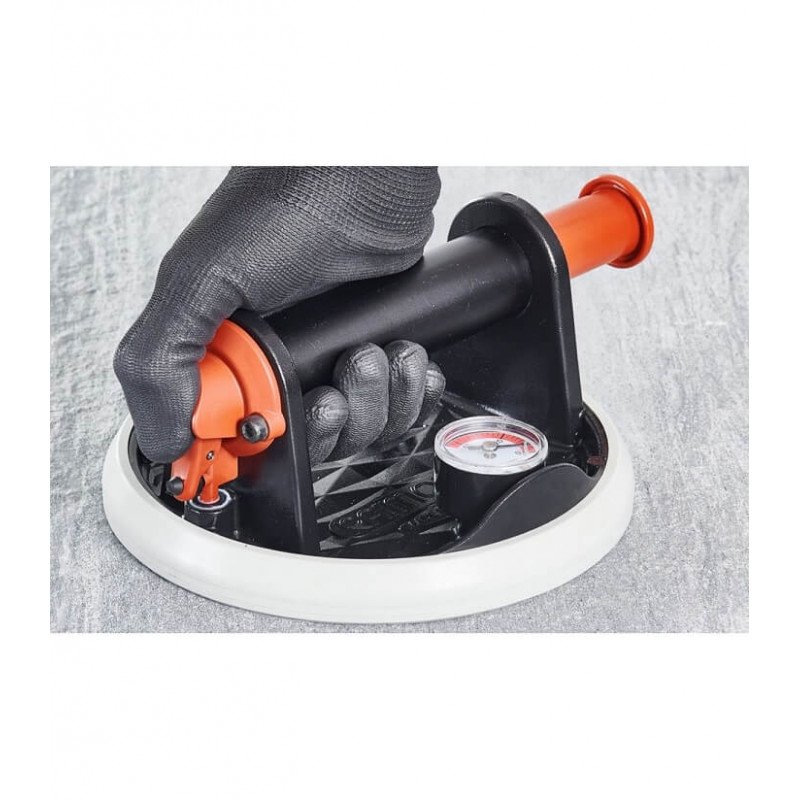 Ventuză cu pomp de vid cu manometru proiectat pentru manipularea placilor si placilor ceramice care garanteaza o aderenta perfecta chiar si pe placi texturate.