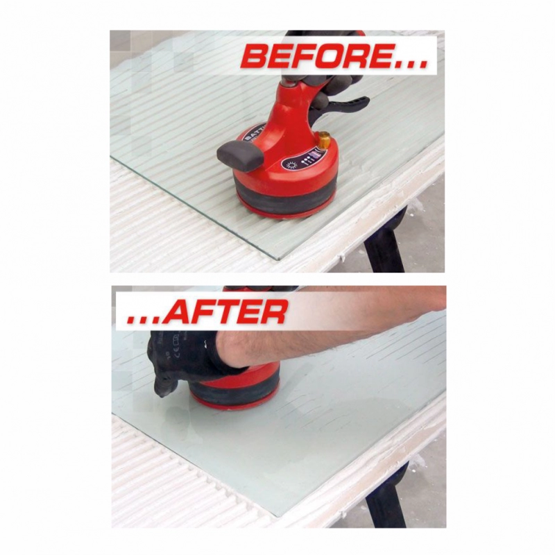 Pentru placi de mari dimensiuni, ventuzele BATTILE sunt esențiale pentru a asigura o aderență perfectă a adezivului evitând „golurile” care ar putea provoca spargeri.