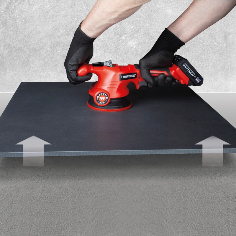 Alimentate cu baterie litiu-ion, ventuzele BATTILE PRO sunt echipamente compacte și ușoare care sunt proiectate să îndepărteze prin vibrație orice bule de aer din plăcile lipite imediat după ce au fost instalate. Echipamentele BATTILE PRO sunt capabile să ridice și să așeze ușor plăcile mici și medii.