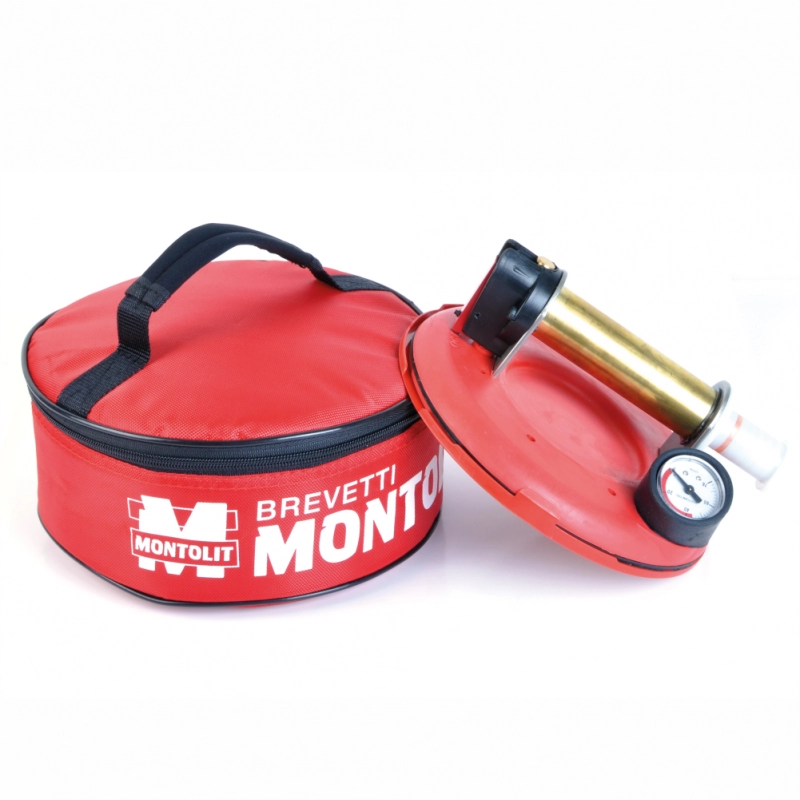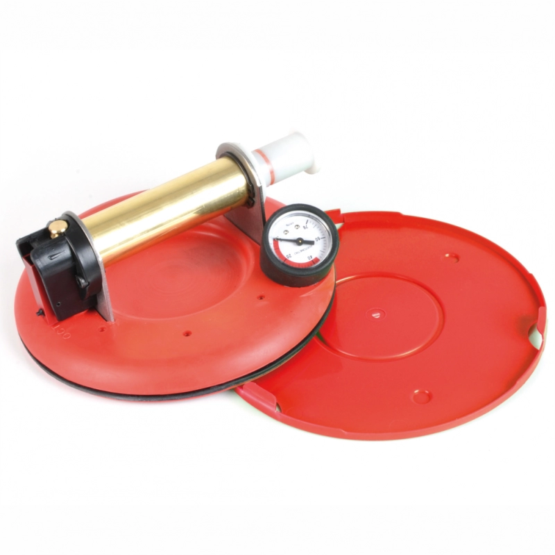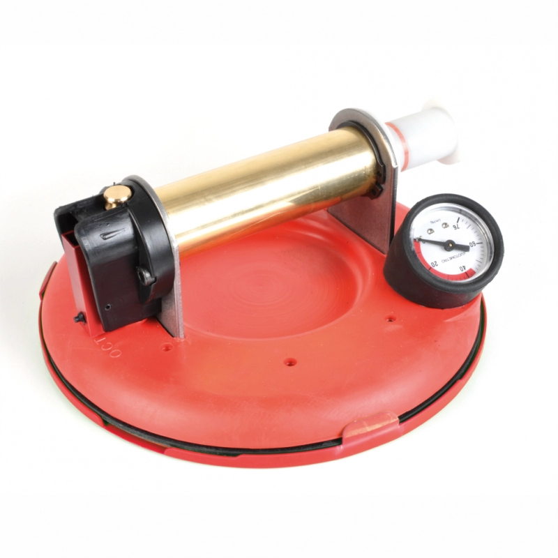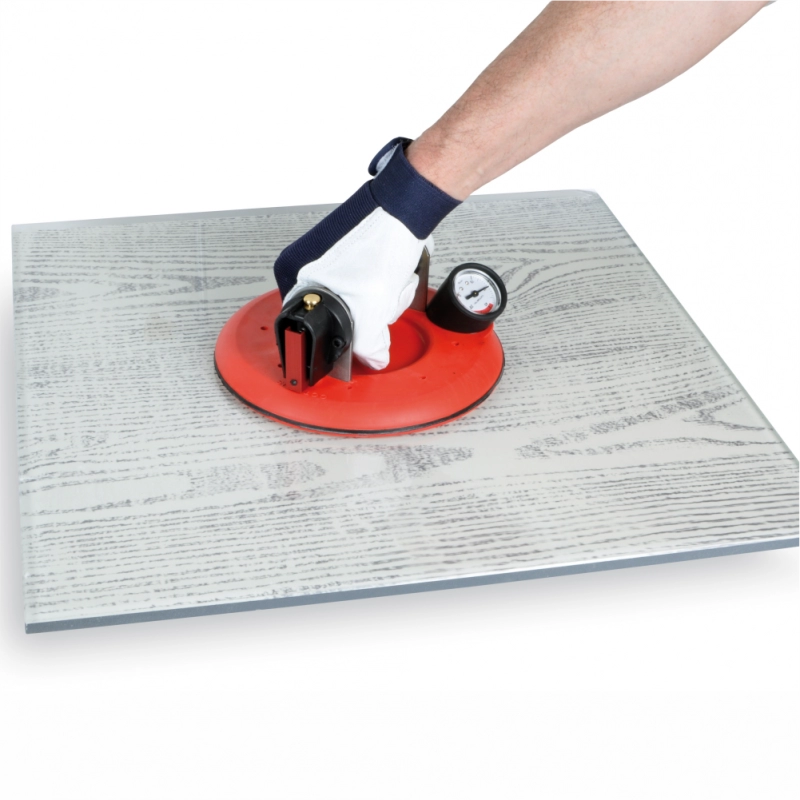 Ventuză mare (Ø 200 mm – 8”), echipată cu un manometru de siguranță „vacuum” care vă arată instantaneu orice pierdere a aderenței cu faianța.