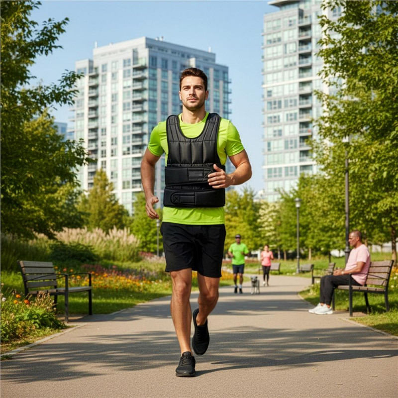 Scurta descriere Vesta fitness cu greutate totala de 10 kg este ideala pentru antrenamente de forta si rezistenta la nivel intermediar. Cele 38 de buzunare cu saculeti umpluti cu nisip fier permit reglarea precisa a greutatii, in functie de intensitatea dorita. Materialul rezistent si sistemul de prindere cu velcro asigura stabilitate si confort in timpul antrenamentului.
