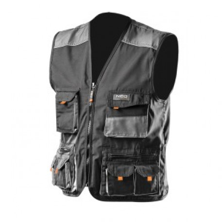 Vesta de lucru Neo (ref. 81-260-M) este o solutie practica pentru toate muncile, atat pentru profesionisti, cat si pentru pasionatii de bricolaj. Fabricat din tesatura Oxford rezistenta, caracterizata printr-o rezistenta foarte buna la operatiile mecanice. Cusaturi cu cusaturi triple pentru durabilitate si elemente reflectorizante pentru a asigura vizibilitatea. Buzunarele robuste rezista la o utilizare intensa si contin toate uneltele de care aveti nevoie la locul de munca. Un alt avantaj este buzunarul pentru smartphone, datorita caruia puteti avea intotdeauna telefonul la dumneavoastra fara sa va faceti griji cu privire la siguranta acestuia. Calitatea este garantata de certificatul european si manopera in conformitate cu EN ISO 13688:2013. Marca Neo raspunde asteptarilor profesionistilor.