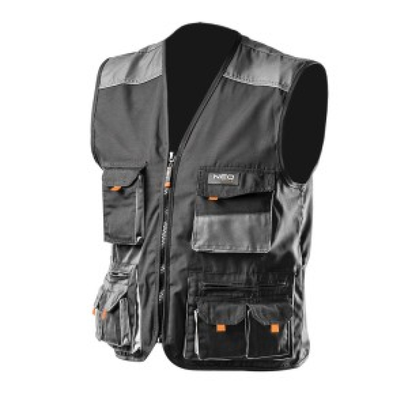 Vesta de lucru Neo (ref. 81-260-XXL) este o solutie practica pentru toate muncile, atat pentru profesionisti, cat si pentru pasionatii de bricolaj. Fabricat din tesatura Oxford rezistenta, caracterizata printr-o rezistenta foarte buna la operatiile mecanice. Cusaturi cu cusaturi triple pentru durabilitate si elemente reflectorizante pentru a asigura vizibilitatea. Buzunarele robuste rezista la o utilizare intensa si contin toate uneltele de care aveti nevoie la locul de munca. Un alt avantaj este buzunarul pentru smartphone, datorita caruia puteti avea intotdeauna telefonul la dumneavoastra fara sa va faceti griji cu privire la siguranta acestuia. Calitatea garantata este certificatul european si manopera in conformitate cu EN ISO 13688:2013, marca Neo raspunde asteptarilor profesionistilor.